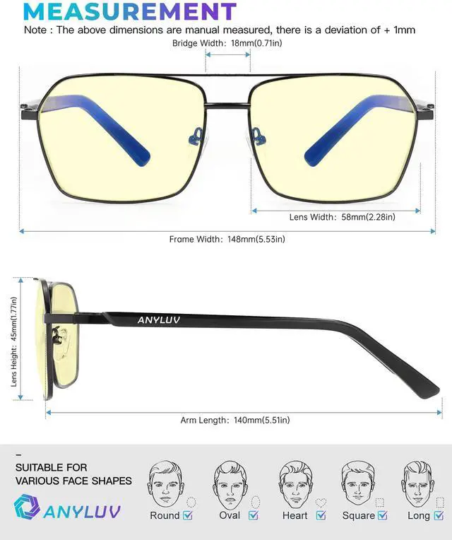 Trendy Blue Light Glasses Designed with square slim frame and ANYLUV logo decor temple, very exquisite and fashion style. These anti blue light glasses help show a sophisticated look that complement any outfits, whether you're working or casual daily life