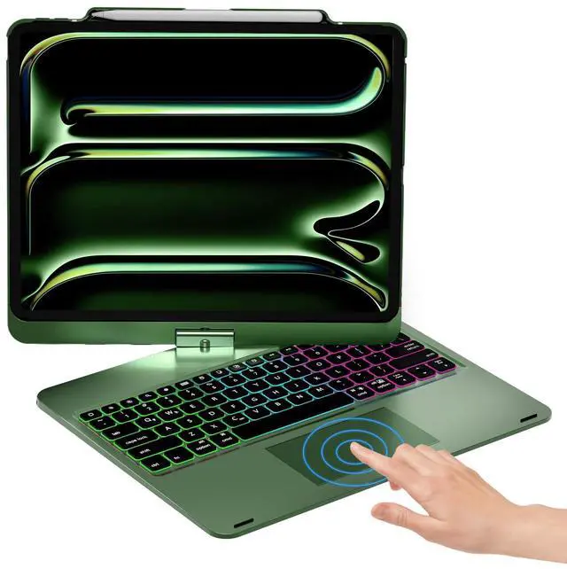 NOKBABO for iPad 13 pro case with keyboard & iPad Air 13 inch case keyboard, Rainbow Backlits, Pencil Holder, 360°Rotatable, Keyboard for iPad Pro 12.9 inch 6th/5th/4th/3rd Generation - Midnight Green
