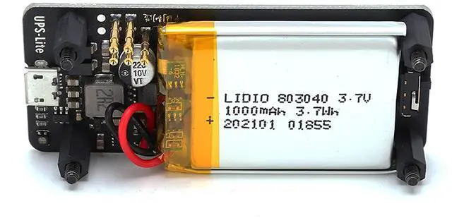 It is recommended to use a power adapter with a power of 5V2A and to the UPS Lite. Because when the lithium battery is low, the external power adapter not only needs to supply power to for, but also needs to provide part of the current to the lithium battery.