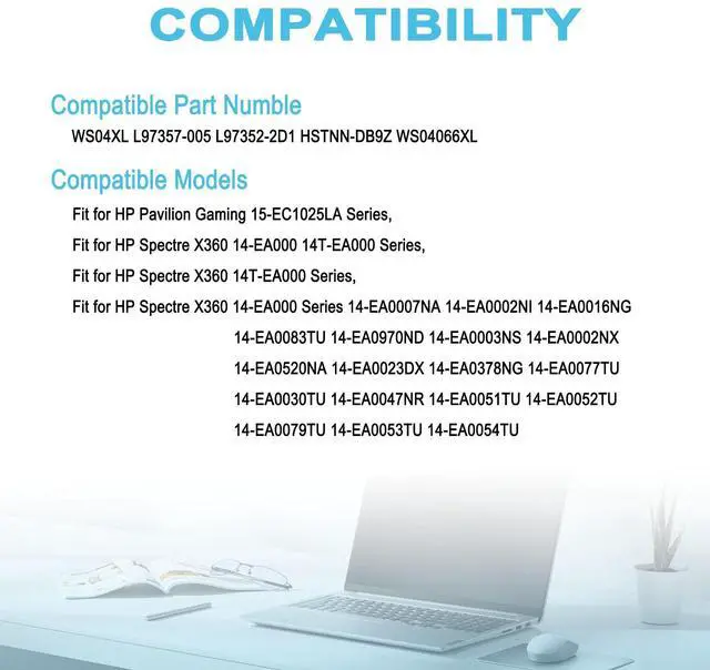 Replacement Battery Part NumbersWS04XL L97357-005 L97352-2D1 HSTNN-DB9Z WS04066XL