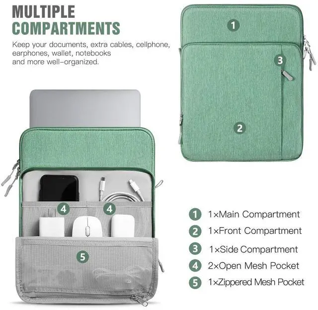 TiMOVO 13.3 -14 Inch Laptop Sleeve Carrying Bag with Pockets for iPad Air 13 Inch 2024, iPad Pro 13 Inch 2024, MacBook Air 2022-2018, MacBook Pro M2/M2/M1 Pro/M1 Max, Galaxy Tab S9+/S8+ 12.4", Lime Green