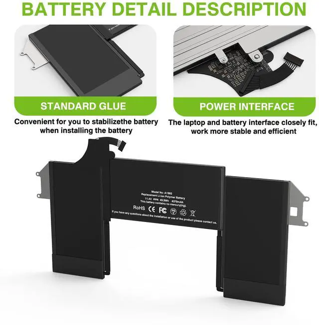 SpecificationsModel:A1965// Battery type: Li-ion // Voltage: 11.4V// Capacity: 49.9Wh // 100% New from Manufacturer. Top circuit boards and smart chip.