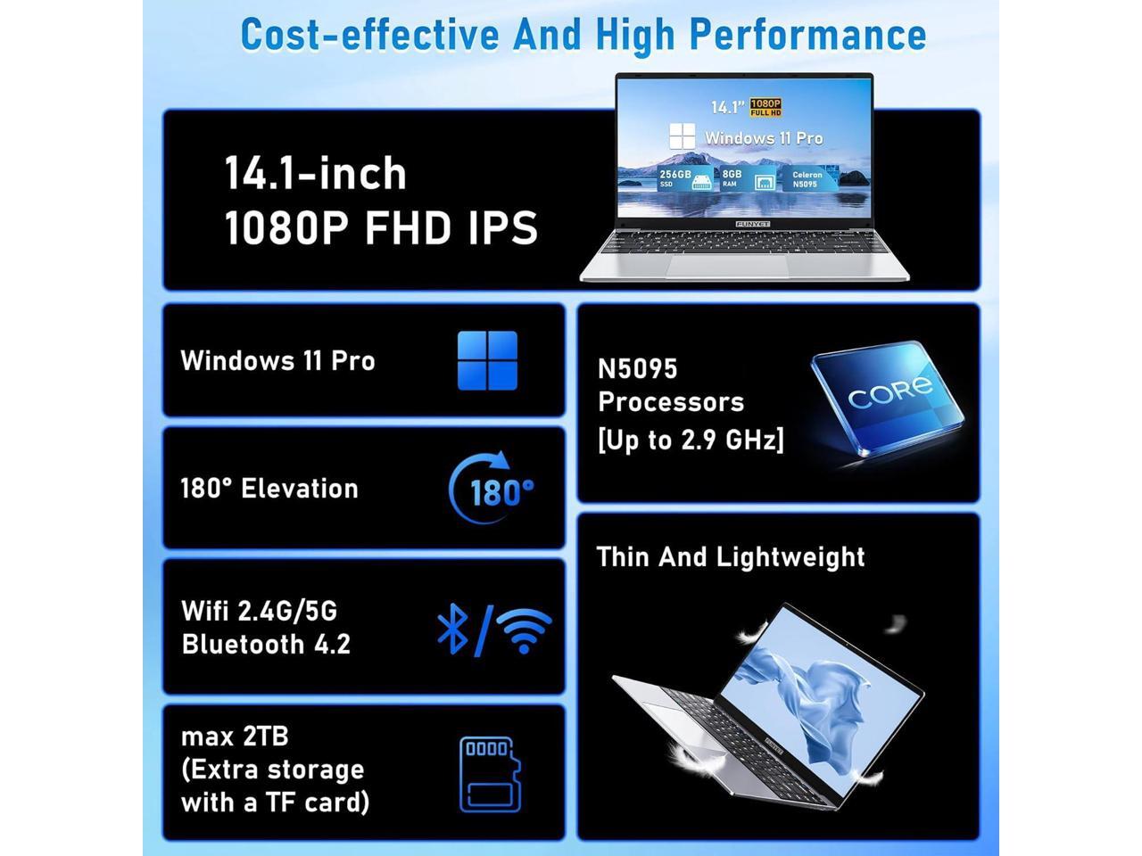 FUNYET Laptop Computer, Gaming Laptops 2025, Lap Top PC Win 11 Pro, 8GB RAM 256GB SSD, N5095 Processor(up to 2.9 GHz), FHD 1920 x 1080, BT 4.2