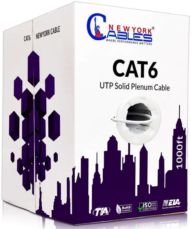 -: Cat 6 plenum cable 1000ft features solid conductors that provide unrivaled conductivity and strength. The Cat 6 cable provides everything you need to outperform your competitors - high speeds and lasting durability. It is ideal for both home and office networking setups. Our Cat6 ethernet cable 1000ft is also certified and meets the ANSI/TIA/EIA and ISO 9001:2015 standards.
