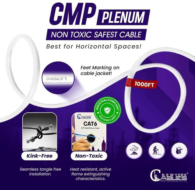 - -: The CMP plenum-rated jacket of our Cat6 ethernet cable is safe and ideal for installation in air ducts and plenum spaces. The Cat6 is fire-resistant, low-smoke emis