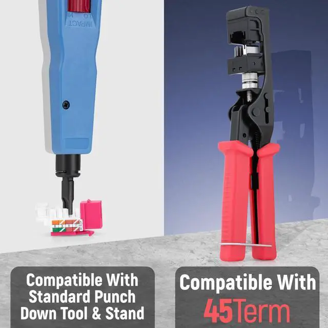 Compatibility - compatible with our 45° Angled speed termination tool - 45Term (B0BL3GS7ZY). The jacks can also work in conjunction with a standard punch down tool and punch down stand for convenience.