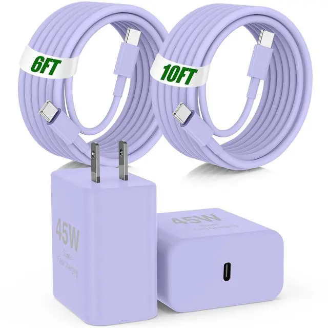45W USB C Fast Charger for iPad Pro 13(M4)/iPad Pro 12.9/11 in 2025-2018,iPad Air M3/M2/5th/4th,iPad 11th A16/10th/Mini 7,iPad Charger Fast Charging Charger Block with 10/6FT C to C Cable-Purple