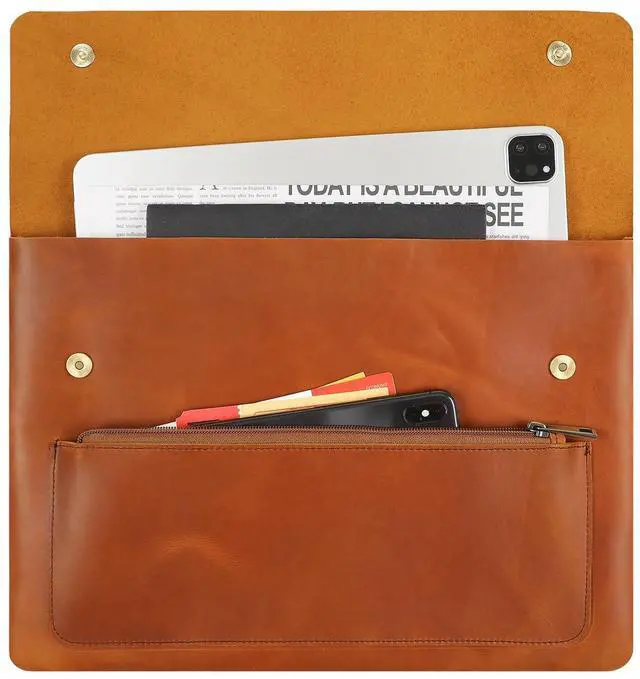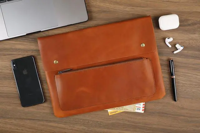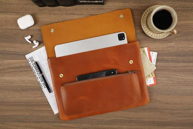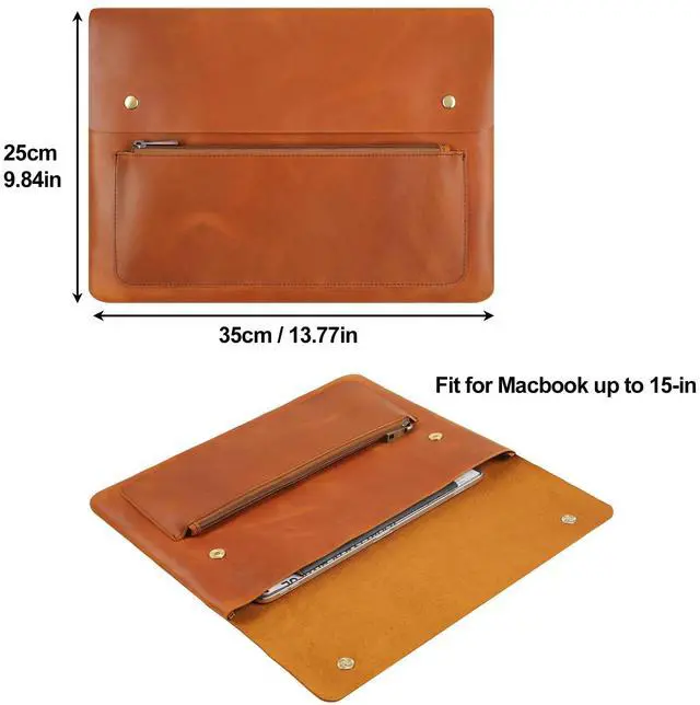 Smart Organization - Features a spacious main compartment plus a zippered pocket for accessories. This leather folder allows for easy organization of your accessories. Whether you need to store your documents, pen, or other essentials, the MacBook sleeve up to