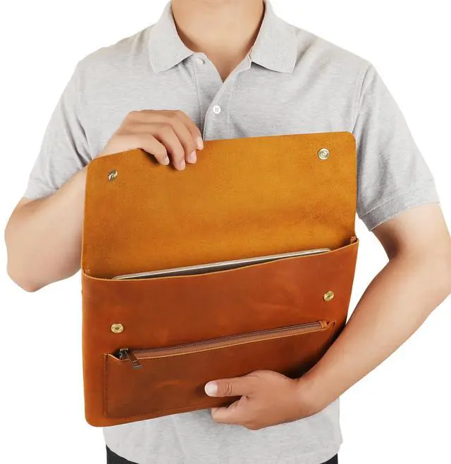 Premium Genuine Leather Protection - Crafted from genuine cowhide leather, this laptop sleeve offers a perfect blend of style and protection for your device. The leather portfolio ensures that your laptop remains safe from water damage and accidental bumps and scratches.