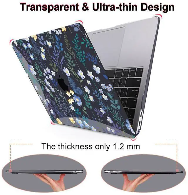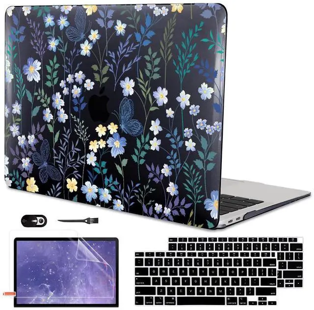 LCMOCICO for M1 MacBook Air 13 Inch Case 2021 2020 2019 2018 Release M1 A2337 A2179 A1932 Cover with Retina Display & Touch ID, Printed Pattern Plastic Hard Shell Case, Meadow Wildflower Black