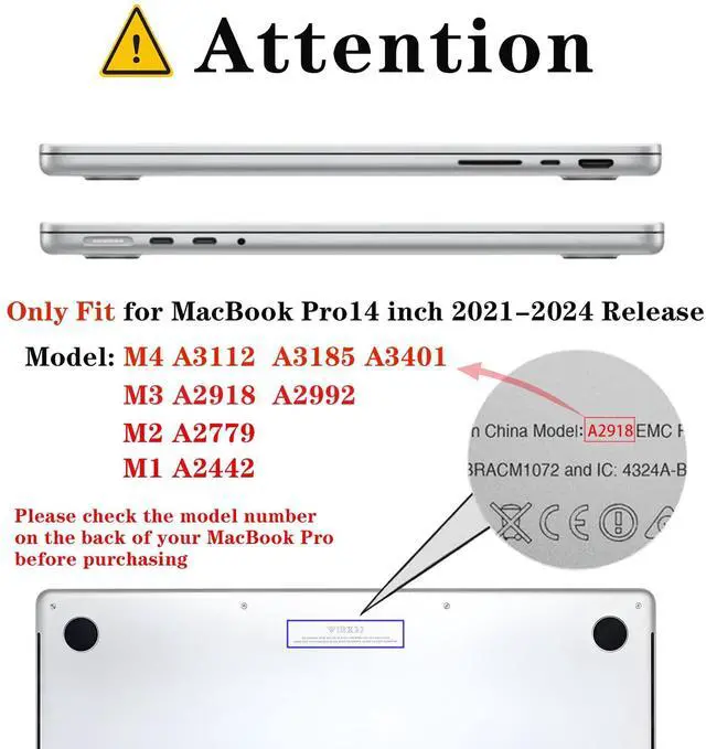 The protective case is only compatible with the 2021-2024 Macbook Pro 14-inch M4 M3 M2 M1 Pro /