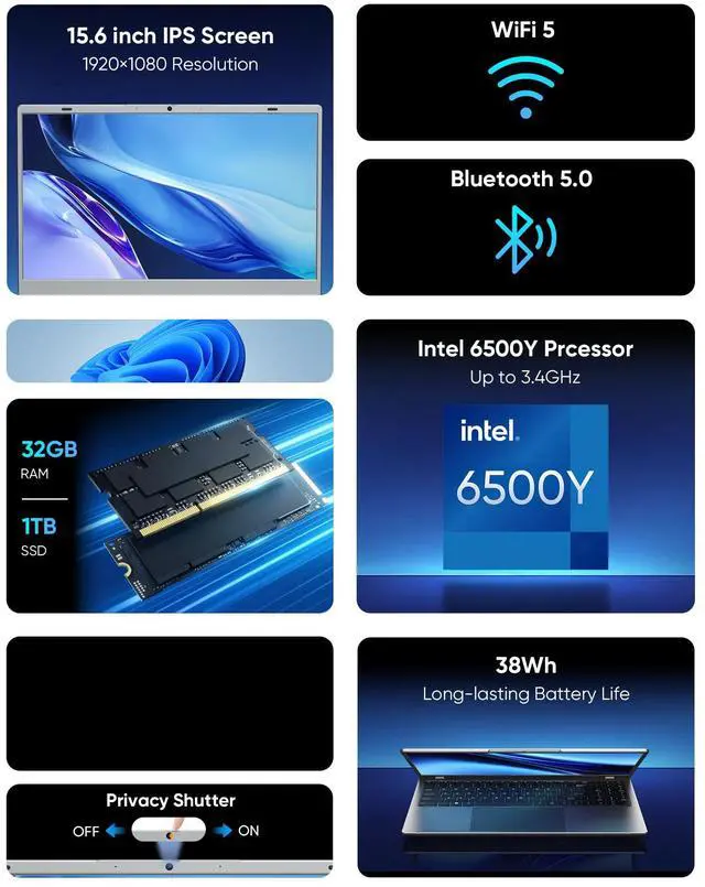[ Pentium 6500Y Processor: Efficient Performance for Daily Tasks ] Powered by the Pentium 6500Y processor, this laptop delivers reliable, low-power performance ideal for daily use. It handles essent