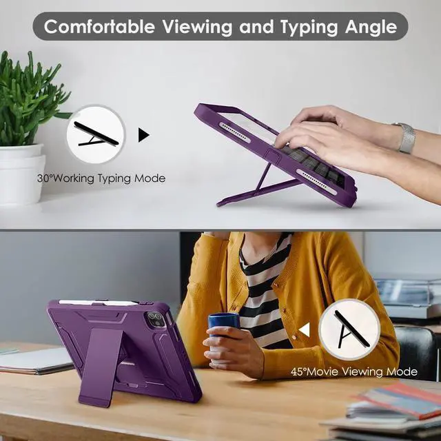 DTTO for iPad Pro 11 inch Case 2022(4th Gen)/2021(3rd Gen), [Screen Protector] Dual Layer Full Body Protection Cover with Pencil Holder, Also Fit iPad Pro 11'' 2020&2018/iPad Air 5/Air 4 - Purple