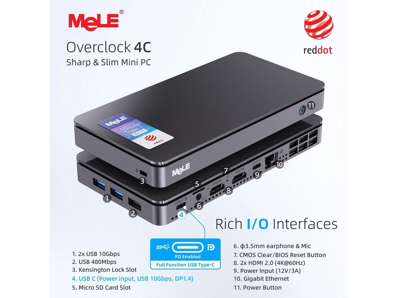MeLE Overclock4C N300 Mini PC (up to 3.8GHz 8C/8T) 32GB DDR4 1TB Micro Desktop Computer, 4K Triple Display, All-in-one USB-C, USB3.2/WiFi/BT/Ethernet on Business Home Office