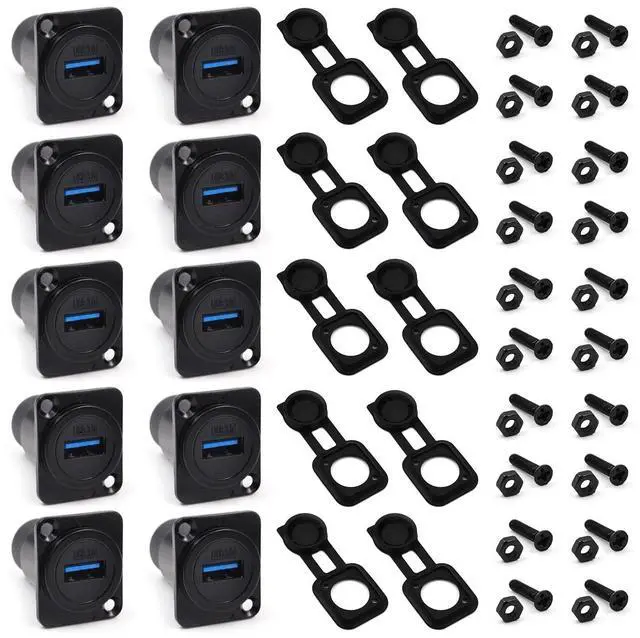 Itvexeme 10PCS USB 3.0 Panel Mount Connector, IP67 USB Pass Through Connector, Female to Female Socket for Audio Video Data Transfer/Charging with Weatherproof Dust Cap