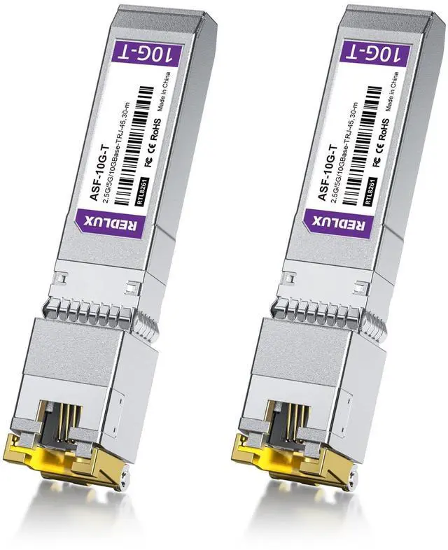 REDLUX 2.5 /5/10G SFP+ to RJ45 Module, CAT. 6a/CAT7 RJ45 Connector, up to 30m, 10GBase-T Copper Transceiver Compatible for Cisco SFP-10G-T, Ubiquiti UF-RJ45-10G, Meraki, and More, 2 Pack