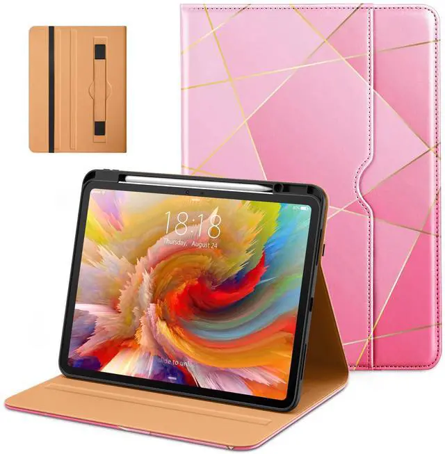 Magnetic Smart Cover - Support Auto Wake/Sleep, built-in leather hand strap(one-handed operation) and external elastic band enhances magnetic closure
