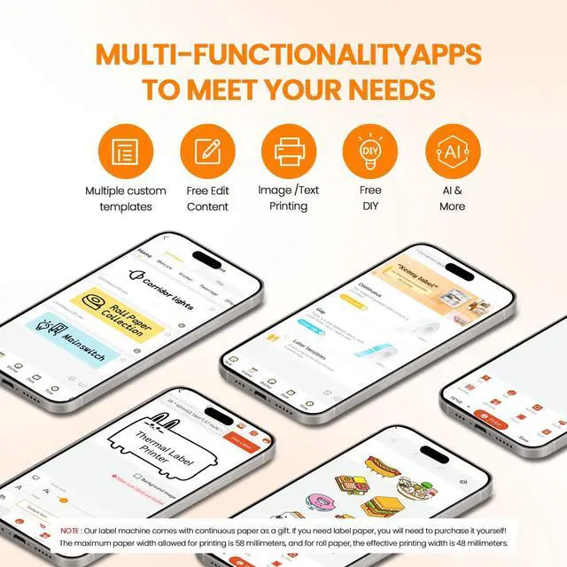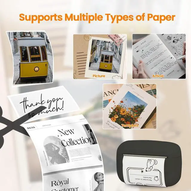 Smart Sticker Printer Machine Application: The mini printer sticker maker application automatically detects label size without the need for manual settings. Supports multiple fashionable fonts and languages. Add borders and symbols to prominent labels in a style. Easily customize the perfect appearance of text size, style, and formatting. Save the template for one click reprinting!