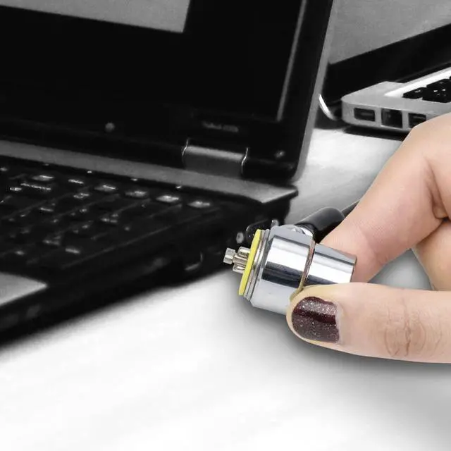 HOW TO USE: For Tablets/Laptops without Standard lock slot: Bound the anchor plate, which is lined with strong adhesive, to the hard surface of the devices, then insert the locking head into the plate with keys and loop the cable around a fixed object. FOR LAPTOPS WITH Standard LOCK SLOT, just simply insert the lock head into the slot, and loop the cable around a fixed object.