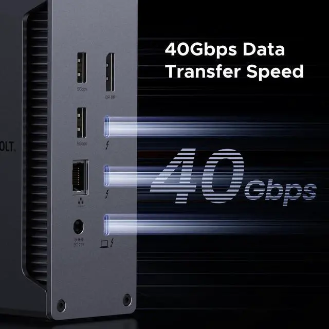 Ultra-Fast Thunderbolt 4 Speeds: Transfer data at 40Gbps, connect multiple devices, and drive high-resolution displays with support for dual 4K@60Hz or a single 8K@30Hz (Windows). Mac users (M1/M2/M3 Pro/Max/Intel) can run dual 4K@60Hz, while base M1/M2/M3 models support single 4K@60Hz. (Requires Thunderbolt 4/3 or USB4 port with DP 1.4 support.)