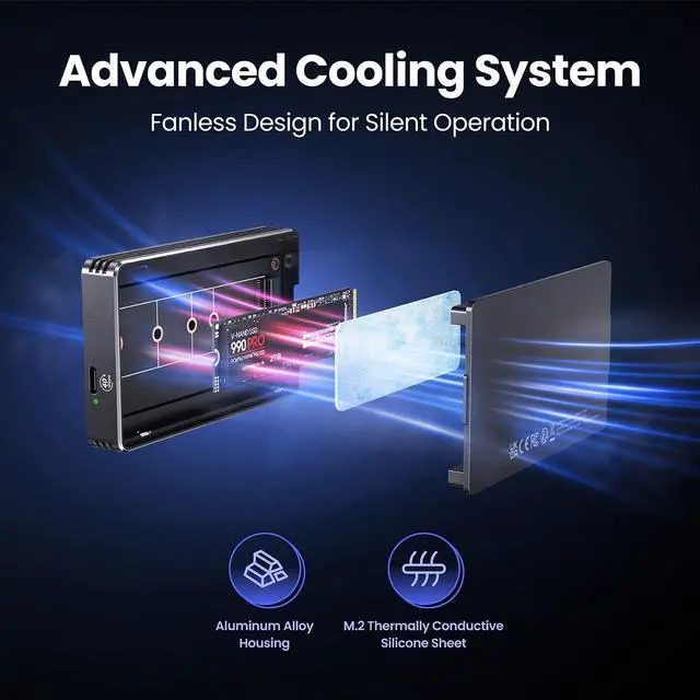 Silent, Cool, and Durable: the fanless all-aluminum NVMe SSD enclosure features double heat dissipation to keep your SSD cool under heavy workloads. Compact and rugged for travel or demanding environments
