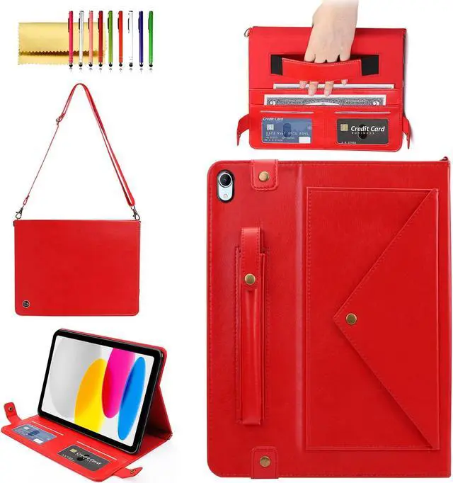 Elegant iPad 11" A16 Case / iPad 10th Generation Case for Women, Smart Folio Stand Case with Handle, Pen Pocket & Shoulder Strap