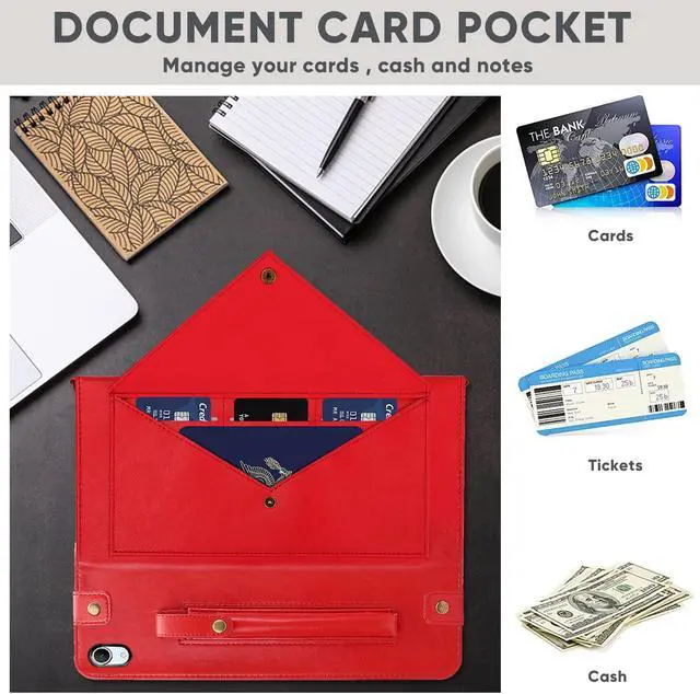 The external pocket & internal multiple slots are designed to store business cards, ID, credit cards, bills, tickets or invoices at any time and any place. Also comes with a stylus holder pocket for your Apple Pencil.