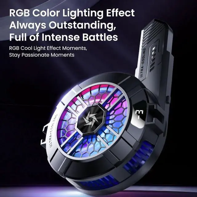 Magnetic Cell Phone Cooler, Universal Cellphone Radiator with Removable Grip, Temperature Display, Portable RGB Cooling Fan Compatible with iPhone/Android/Tablet/iPad