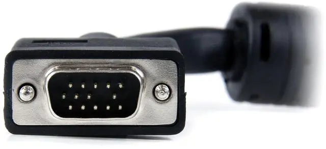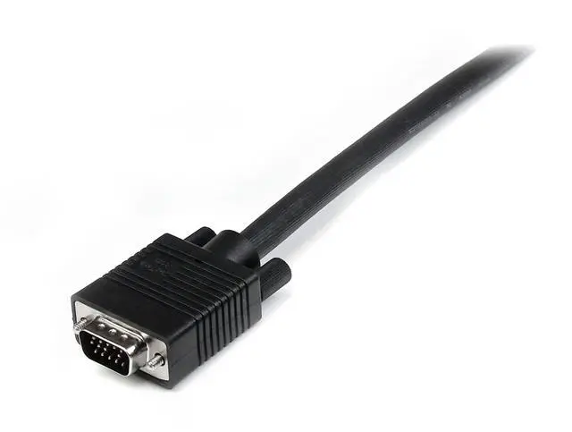 The MXT101MMHQ25 High Resolution VGA Cable (25ft) is designed to provide the highest video quality possible through VGA, ideally suited for high resolution applications of 1920x1200 and above. This durably constructed coaxial VGA video cable (HD15 to HD15) eliminates the picture "ghosting" and fuzzy images that are inherent to non-coaxial VGA cables, while delivering superior EMI interference protection by using ferrite cores near the connector ends.