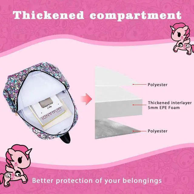 Exquisite Details--Crafted from soft, water-resistant polyester, this backpack is equipped with premium hardware and a metallic logo. The vibrant Tokidoki artwork adds a delightful touch to your everyday life.