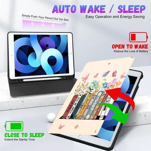 Auto Sleep/Wake Built-in magnetic strip, this for ipad cover 9th generation, for 7th generation ipad case, for 8th generation ipad case with the smart funtion of auto sleep/wake, no wasting the power energy and extend your iPad standby time.