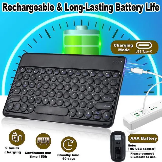 Reasonable Key Design: Comfy and Precise Typing. Experience Our wireless bluetooth keyboard features a reasonable key design that provides an excellent typing experience, with good key travel and feedback. Whether you're typing a long document or a quick email, youll enjoy the comfort of typing with this bluetooth wireless keyboard. The bluetooth mouse is also designed to offer a comfortable and responsive experience, with silent and fast clicking