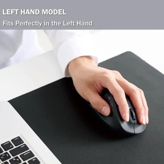 ELECOM Left Hand Bluetooth Wireless Ergonomic Mouse, Silent Click, 2000DPI, 5 Buttons, Optical Sensor, Compatible with PC, Mac, Laptop, EX-G, Lsize Black (M-XGL31BBSKBK)