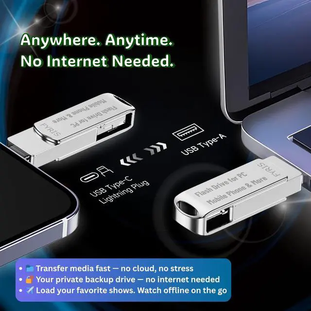 Seamless Compatibility Across Devices Works with PCs, Macs, iPhones, Android phones, Galaxy Note, iPads, tablets, TV boxes, and routers. Whether you call it a thumb drive, jump drive, or memory stick, its ready to plug in and performno setup, no hassle. Even if you switch phones or move between Android and iOS, Fyris keeps your files accessible and easy to manage.