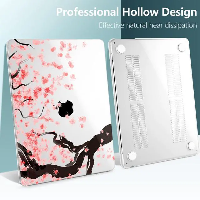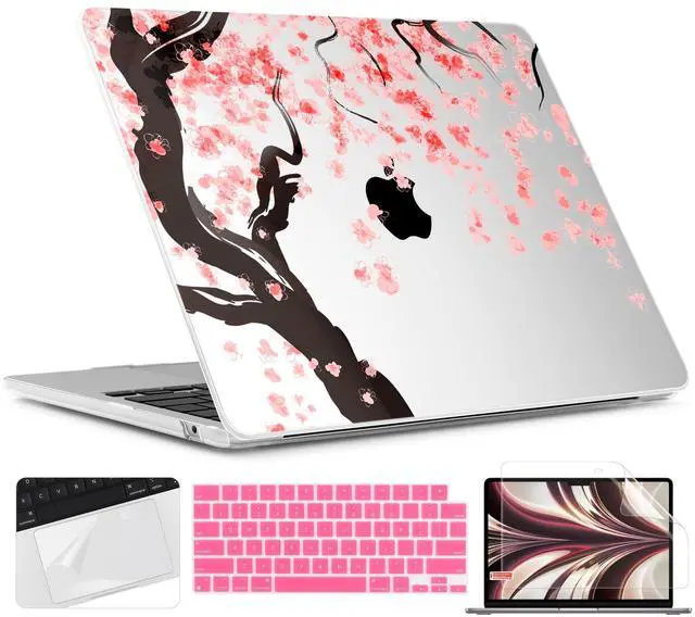 TWOLSKOO for M4 MacBook Air 13.6 inch Case 2025-2022 Release M4 A3240 M3 A3113 M2 A2681, Plastic Hard Shell & Screen Protector & Keyboard Cover & Trackpad Film, Cherry Blossoms