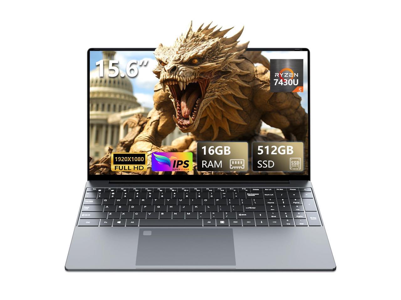 2025 15.6 inch Gaming Laptop,with 16GB RAM, 512GB SSD,R5 7430U Processor (Up to 4.3GHz), 1920 x 1080 Display,Wi-Fi 5, Bluetooth 5.0,HDMI Port x1, Backlit Keyboard,Win11 Pro,Traditional Laptop Computer
