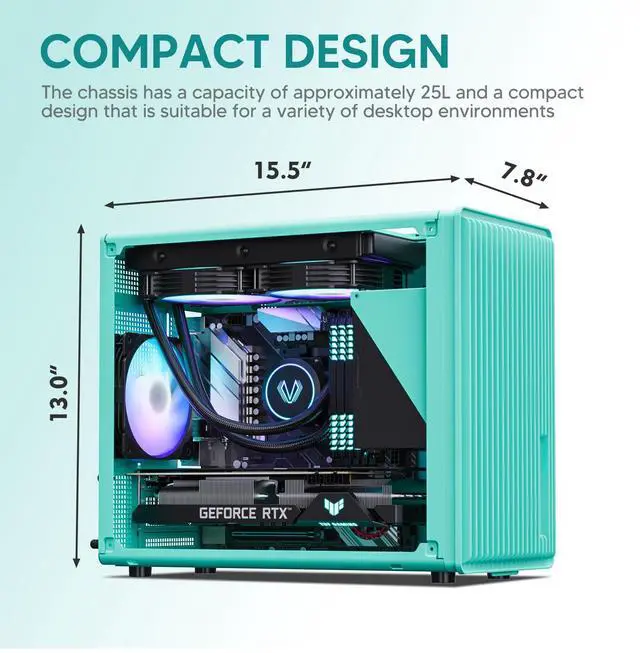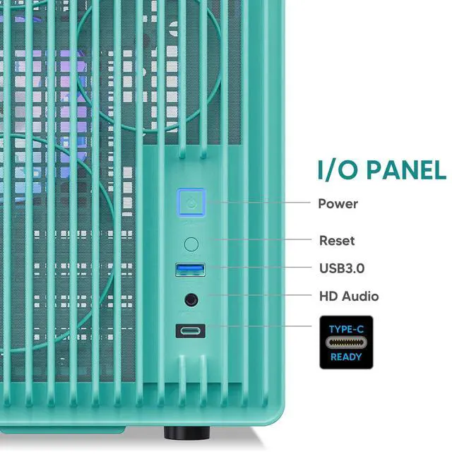 Vetroo M06 Micro-ATX/Mini-ITX Gaming PC Case, Compact High Airflow Mesh Mid Tower, Supports 5×120mm Fans & 240mm Liquid Cooling, GPU Up to 355mm, Adjustable PSU Mount, USB Type-C I/O - Mint Green