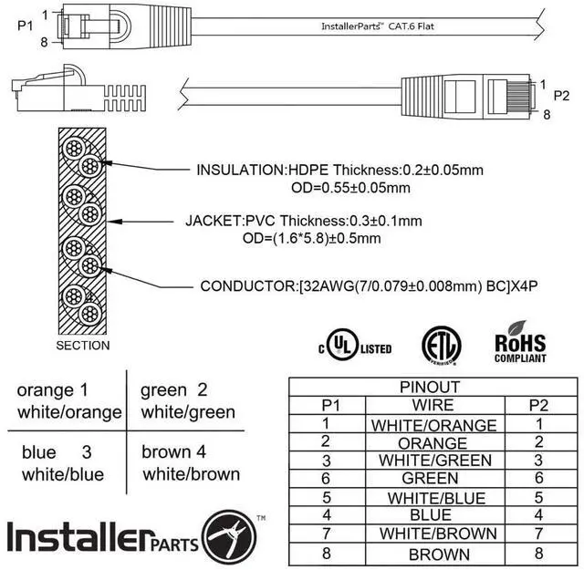 Flat Cat6 Cable: Installerparts Flat Cat6 Patch Cables Are Ultra Flexible, Attractive And Space Saving. With A Thickness Of Only 1.6Mm, They'Re Perfect Under Carpets, Up Walls, Behind Furniture, Or Anywhere Where Space Is A Premium.