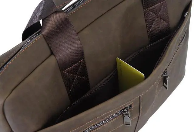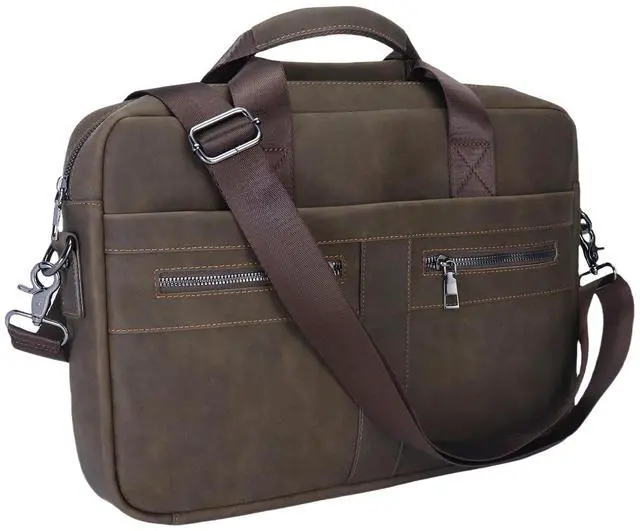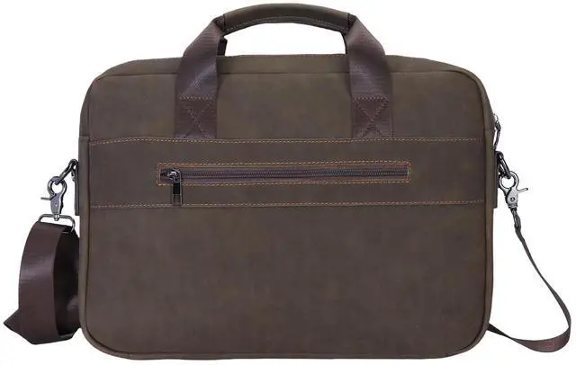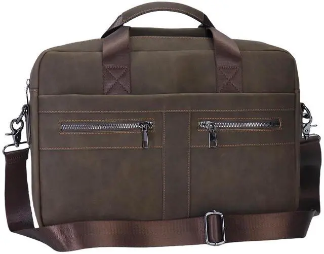 Elevate your professional style with this sophisticated laptop messenger bag that perfectly balances form and function. Crafted with vintage-inspired faux leather, this versatile bag accommodates laptops up to 15.6 inches in a compact fit, or 14 inches with roomier organization. The crossbody design with shoulder strap offers comfortable carrying options for your daily commute or business travels. Multiple compartments help keep your work essentials organized, from documents to electronics. The classic satchel silhouette and timeless briefcase styling make this bag an excellent choice for the modern professional, seamlessly transitioning from office meetings to business trips.