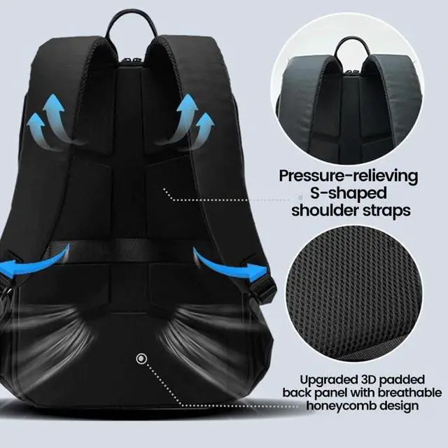 Pressure-relief System S-curve shoulder straps + 3D padded back panel reduce 35% shoulder strain. 5-layer back cushion: Lycra fabric + eco-EVA foam + shock-absorbing sponge + reinforced Oxford base + silk-lined smooth interior.
