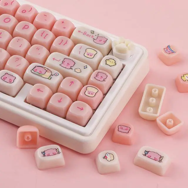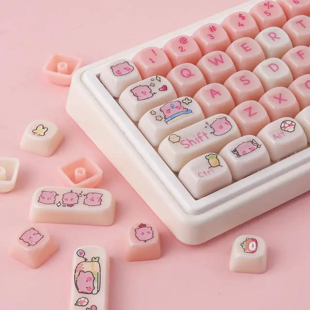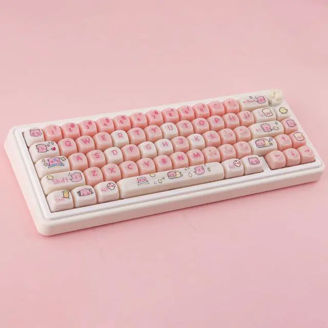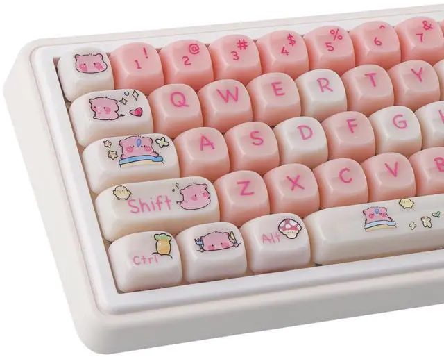 Whether you're a gamer, typist, or simply want to add a touch of kawaii to your keyboard, these keycaps are perfect for you. Compatible with most keyboard models, including RK61, Keychron, and 60% keyboards, these keycaps provide an easy way to customize your keyboard to match your style. The dye-sublimated legends ensure that the keycap legends won't fade over time, maintaining their vibrant and crisp appearance. Upgrade your keyboard with these Pink MOA Profile PBT Keycaps and enjoy a unique and personalized typing experience. Perfect for Valorant enthusiasts, anime lovers, or anyone who appreciates cute and stylish keycaps.
