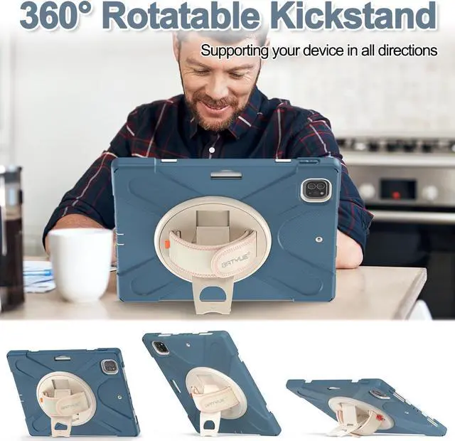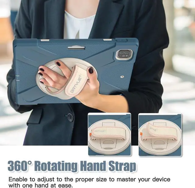 [Amazing Mul-tifunction Hand Strap & Kickstand] Built-in 360 degree rotating kickstand and adjustable handle hand strap, provides multi-angle viewing, offering a pretty convenient use experience for film watching, working and typing. The stand is stable enough on several different surf