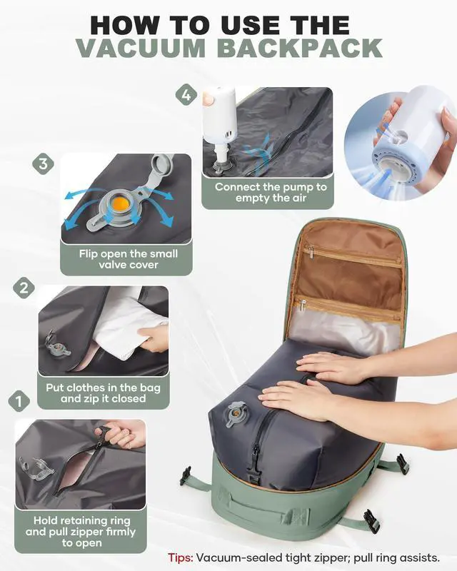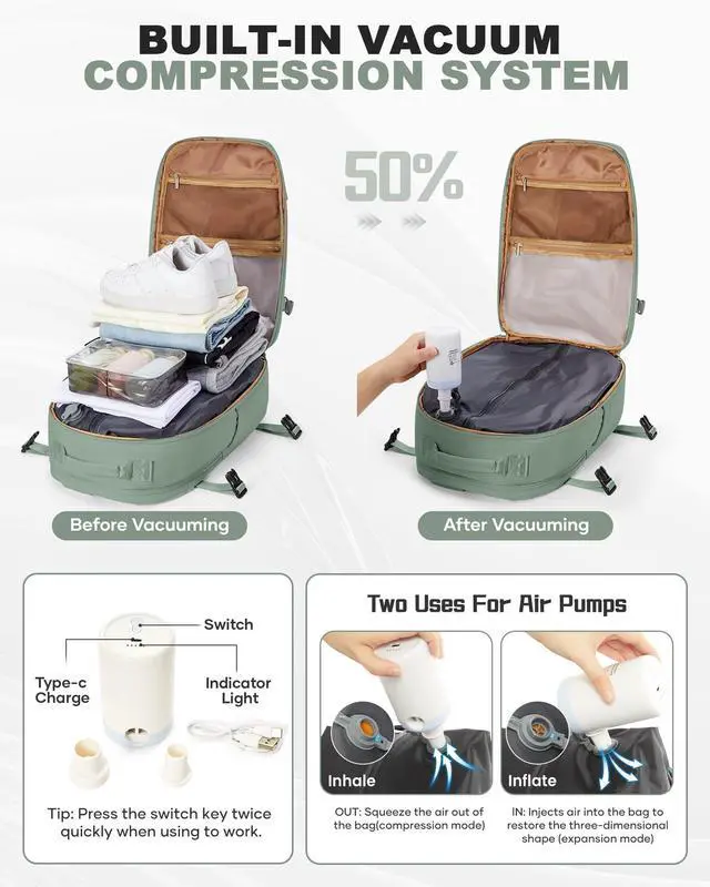 coofay Vacuum Backpack Travel with Pump Vacpack Backpack with Vacuum System Travel Compression Backpacks for Women Mochila De Viaje Carry on Luggage