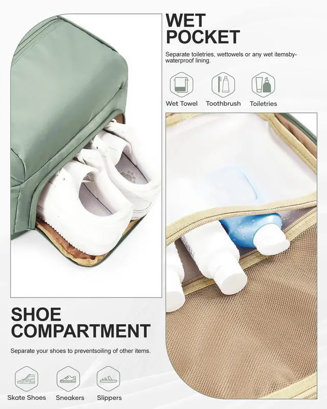 Stay Organized & Dry: Separate Shoe & Wet Compartments: Enjoy ultimate organization with a dedicated shoe compartment for sneakers/flip-flops and a high-density waterproof wet bag. This vacuum sealed backpack travel design keeps dirty shoes and damp items (like swimwear) separate from your clean, compressed clothes in the main vac pack backpack, making transitions between activities easy