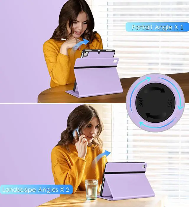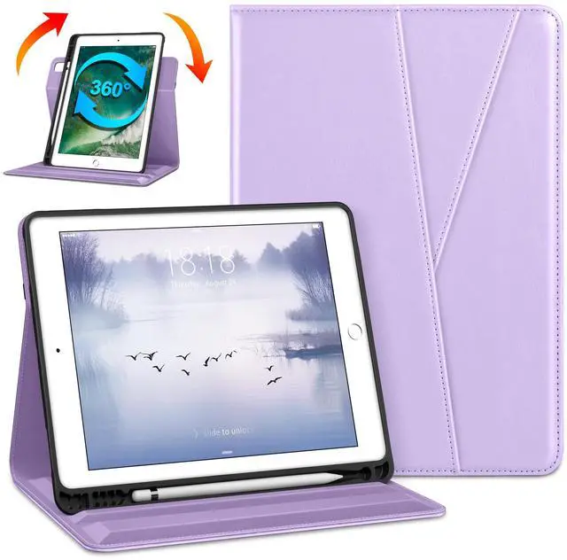 DTTO Rotating Case for iPad 6th / 5th Generation 9.7 Inch 2018/2017, iPad Air 2 / Air 1 Case, 360 Degree Swiveling Premium Leather Folio Stand Cover with Pencil Holder - Auto Wake/Sleep, Lavender