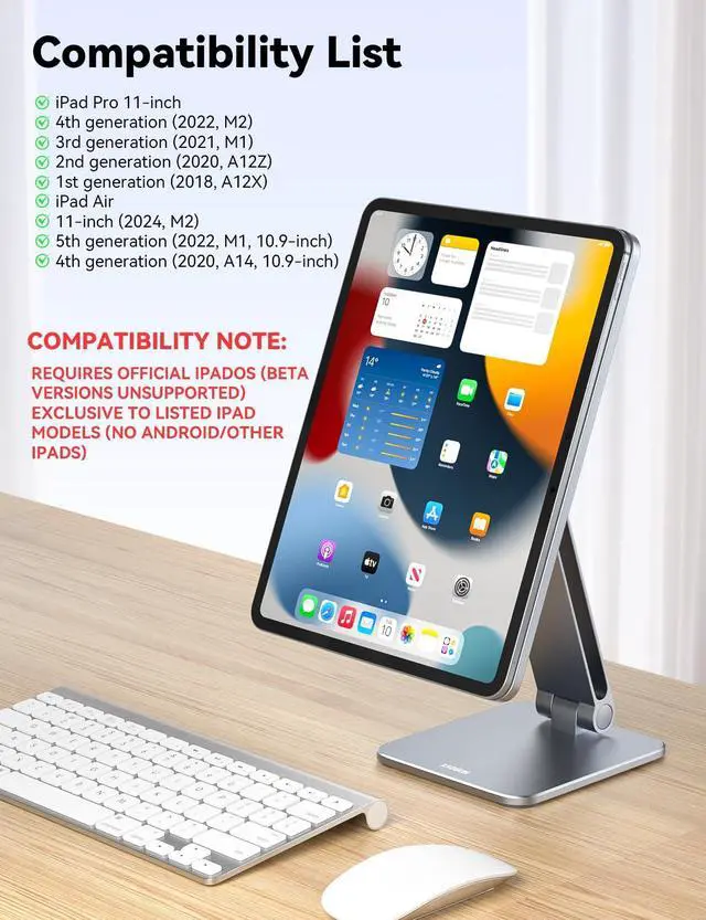 XAOSUN Magnetic Wireless Charging Stand for iPad Pro/Air 11" M2, Foldable Aluminum Alloy Tablet Stand for Desk, Adjustable Tablet Mount for iPad Pro 11" 1st/2nd/3rd/4th, Air 10.9" 4th/5th, Air 11" M2