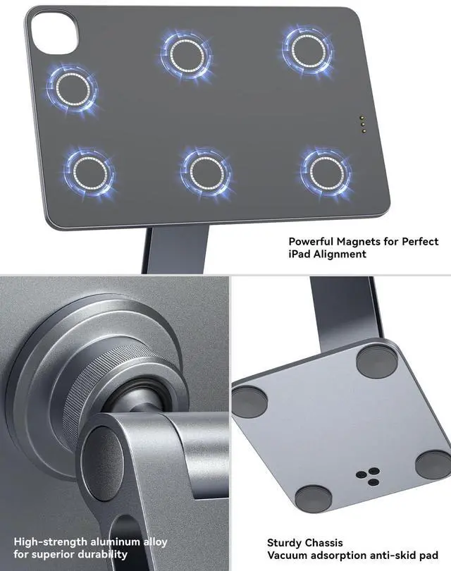 Effortless Wireless ChargingSay goodbye to tangled cables with the worlds first magnetic wireless charging stand for iPad. Simply place your iPad on the stand, connect the USB-C cable, and enjoy 18W fast chargingno complicated setup required. With Pin Smart Connectors and a sleek design, it keeps your iPad powered up and ready to go.