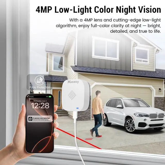 2.5K Ultra HD Picture Quality & Color Night Vision: Equipped with a 4-megapixel lens and 2.5K (2560×1440) ultra-high-definition resolution,it delivers stunning video performance; Even in low-light environments,it can excellently display full-color images,ensuring no critical details are missed and safeguarding nighttime security