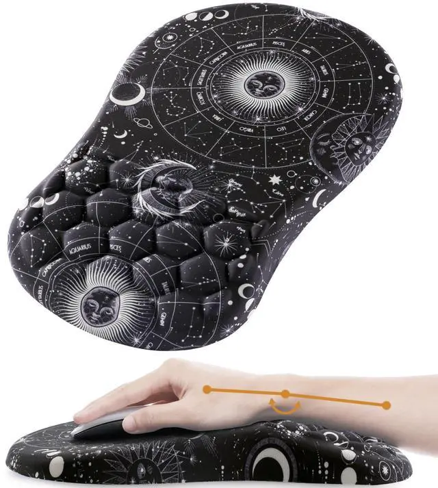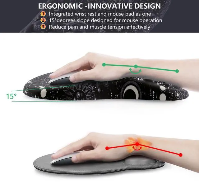 Ergonomic Mouse Pad the mouse pad is made of 100% memory foam, and the tilt angle on the surface can keep your arm always in the in proper alignment. The ergonmic structure of the arched part provides the maximum comfort to your wrist, and prevents the carpal tunnel syndrome
