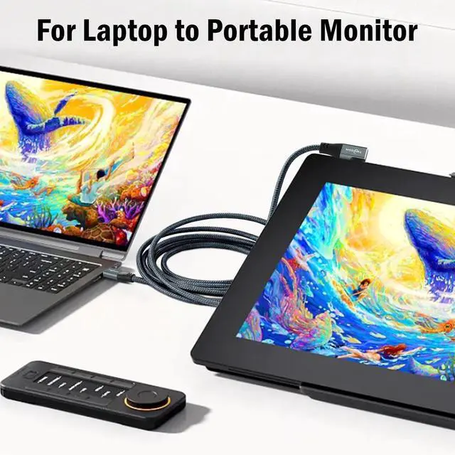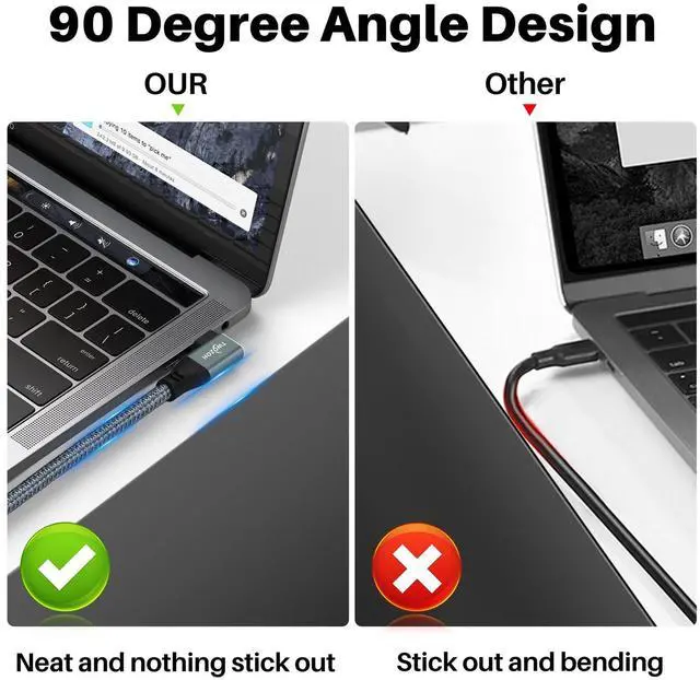 Built with a unique E-marker smart chip that intelligently matches the required current and greatly reduces heat. The double sided USB C connectors come with a hard rubber end thats designed for frequent insertions and tight connection without disconnecting.